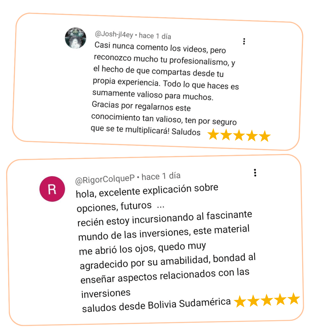 En paralelo, he acompañado a más de 500 estudiantes, he construido una comunidad de más de 40.000 personas en YouTube, y durante el último año mi portafolio tuvo un rendimiento del 15%, en línea con el S&P 500, gestionado desde un enfoque consciente y estructurado.