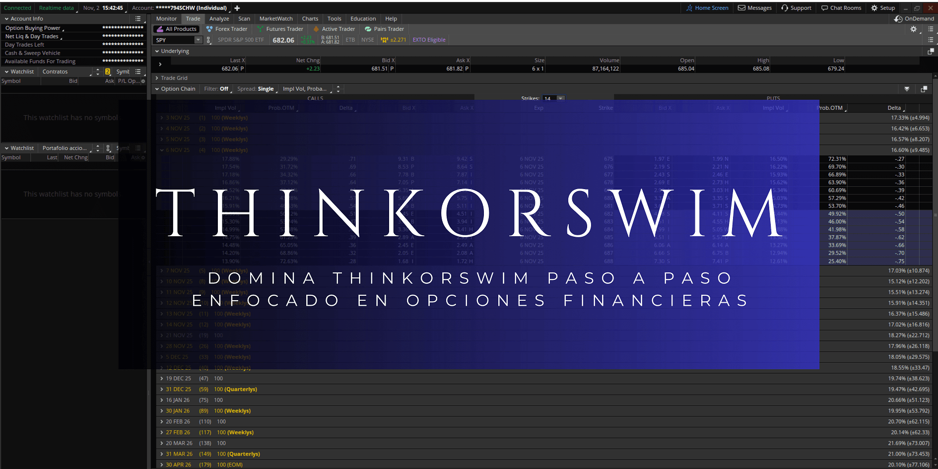 ✔ Acceso al Curso Domina Thinkorswim Paso a Paso (enfocado en opciones).